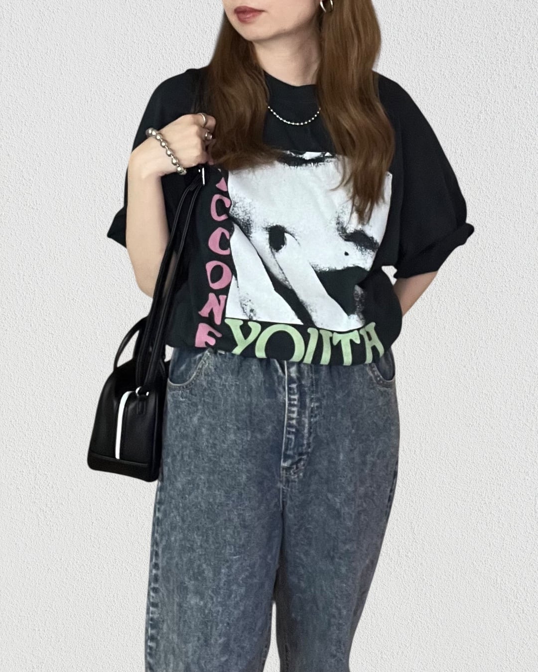 フロントのフォトプリントと「CICCONE YOUTH」の大胆なロゴが目を惹くグラフィックTシャツ。