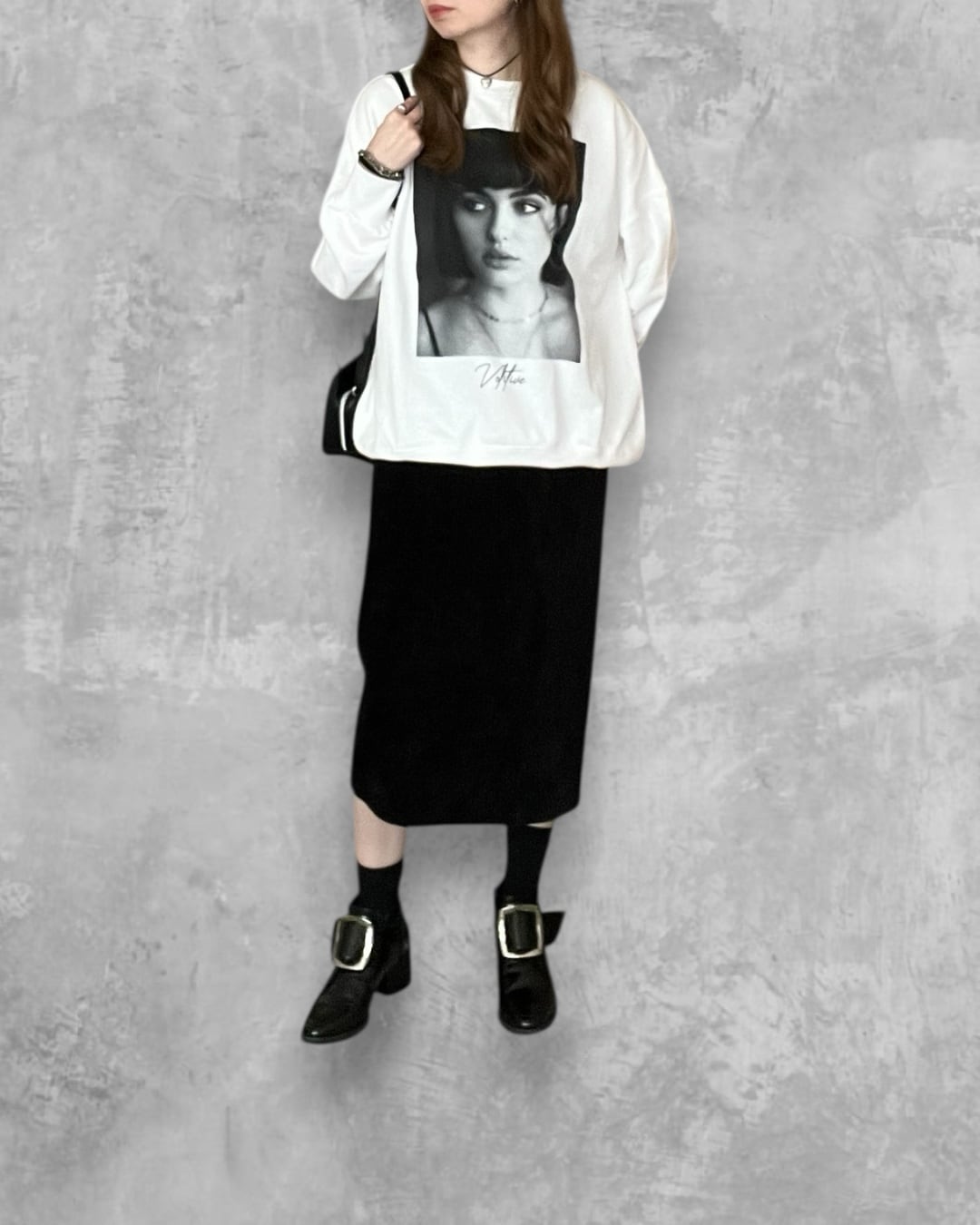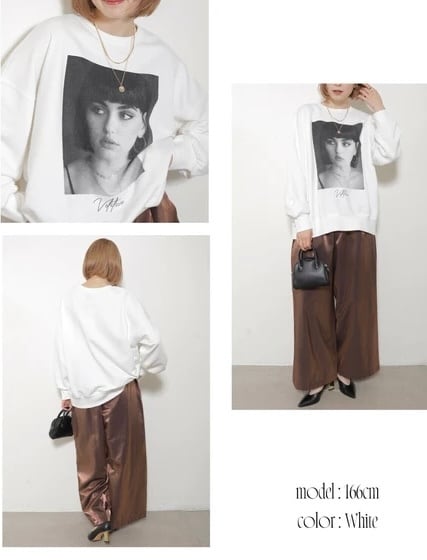 存在感のあるフォトプリントがコーデのアクセントになるフォトスウェット。