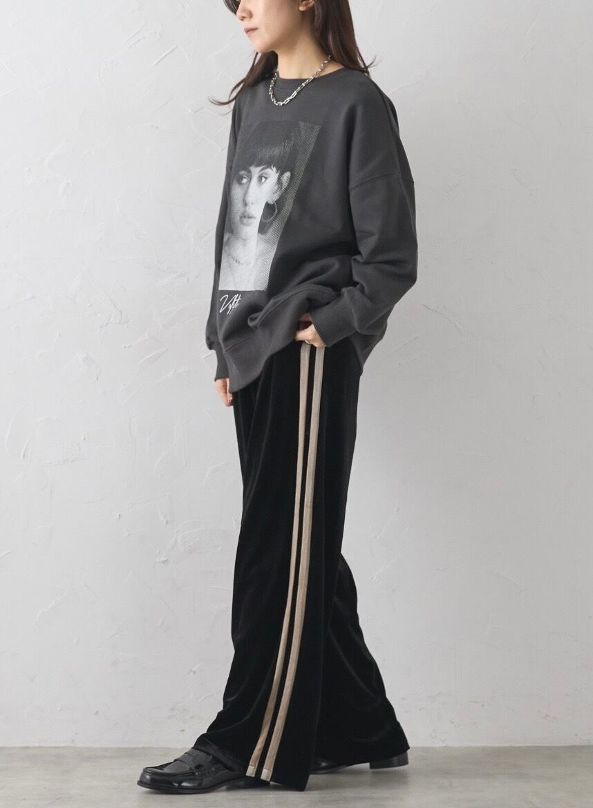 存在感のあるフォトプリントがコーデのアクセントになるフォトスウェット。