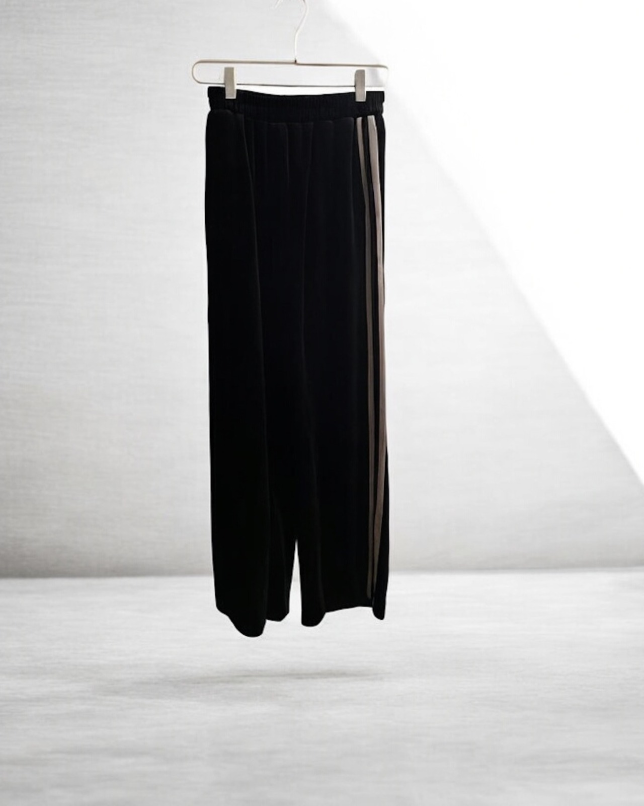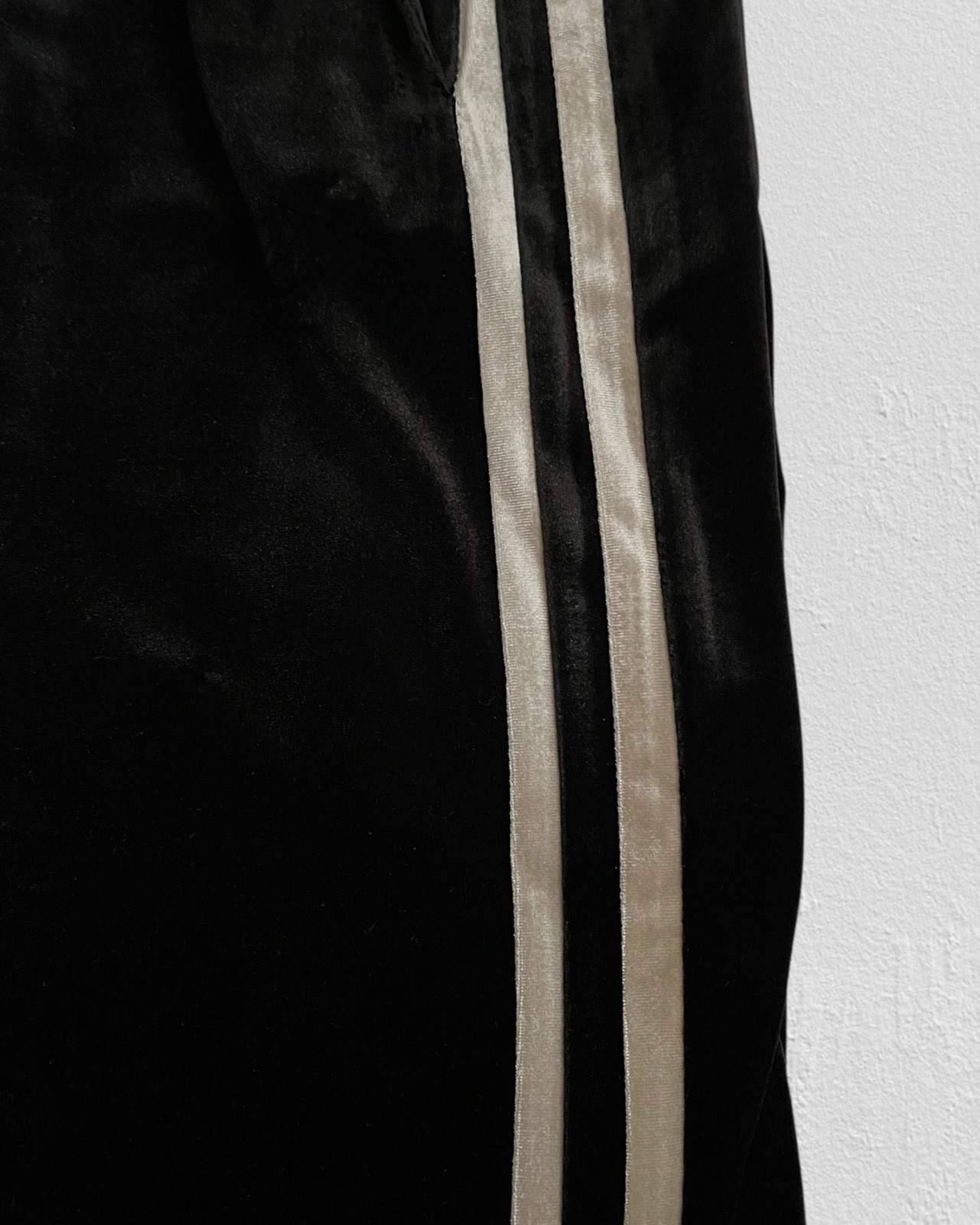 さりげない光沢が大人っぽさを引き立てる、ベロア素材のライントラックパンツ。